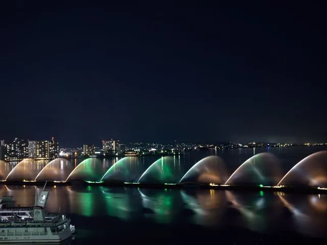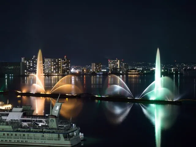 びわこ花噴水は、琵琶湖の湖上に現れる大きな噴水ショー。