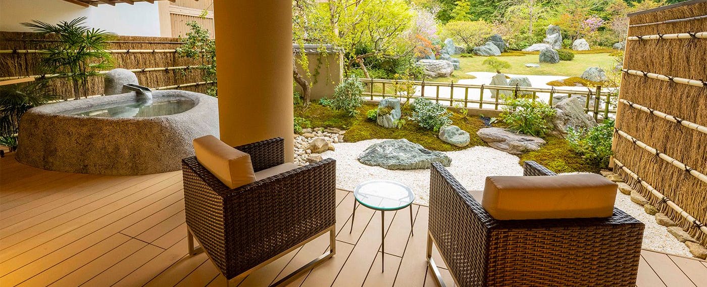 静寂に包まれた環境で日本の美しい四季や自然を眺めながら、心身ともにリラックスできるラグジュアリーな体験が待っています。