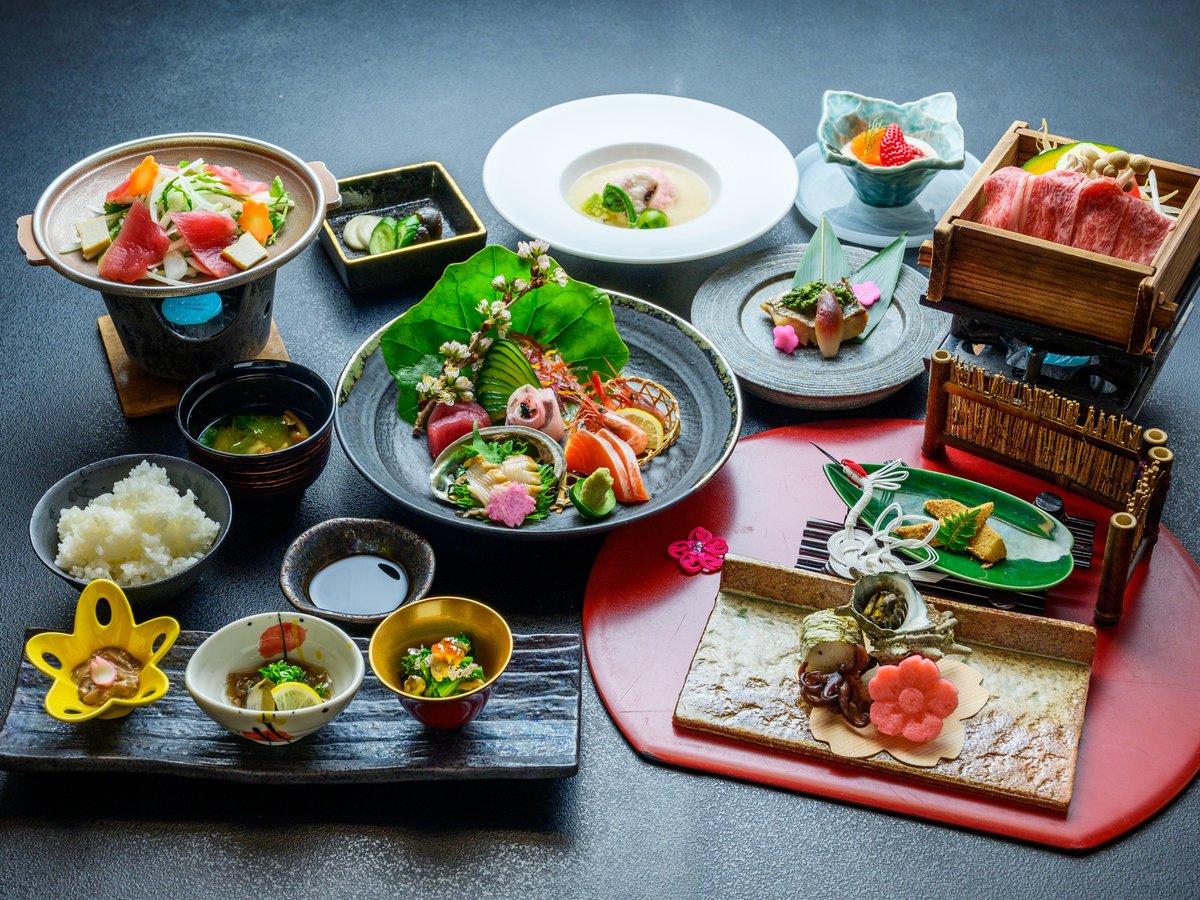 - 漁港直送の魚介を使った贅沢な会席料理