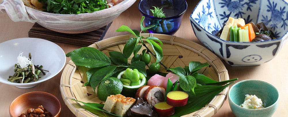 地のものを使ったこだわりの料理も人気で、メインディッシュは和牛・しゃも・すっぽん・車海老から選べるという、選択肢の多さもおすすめのポイント。